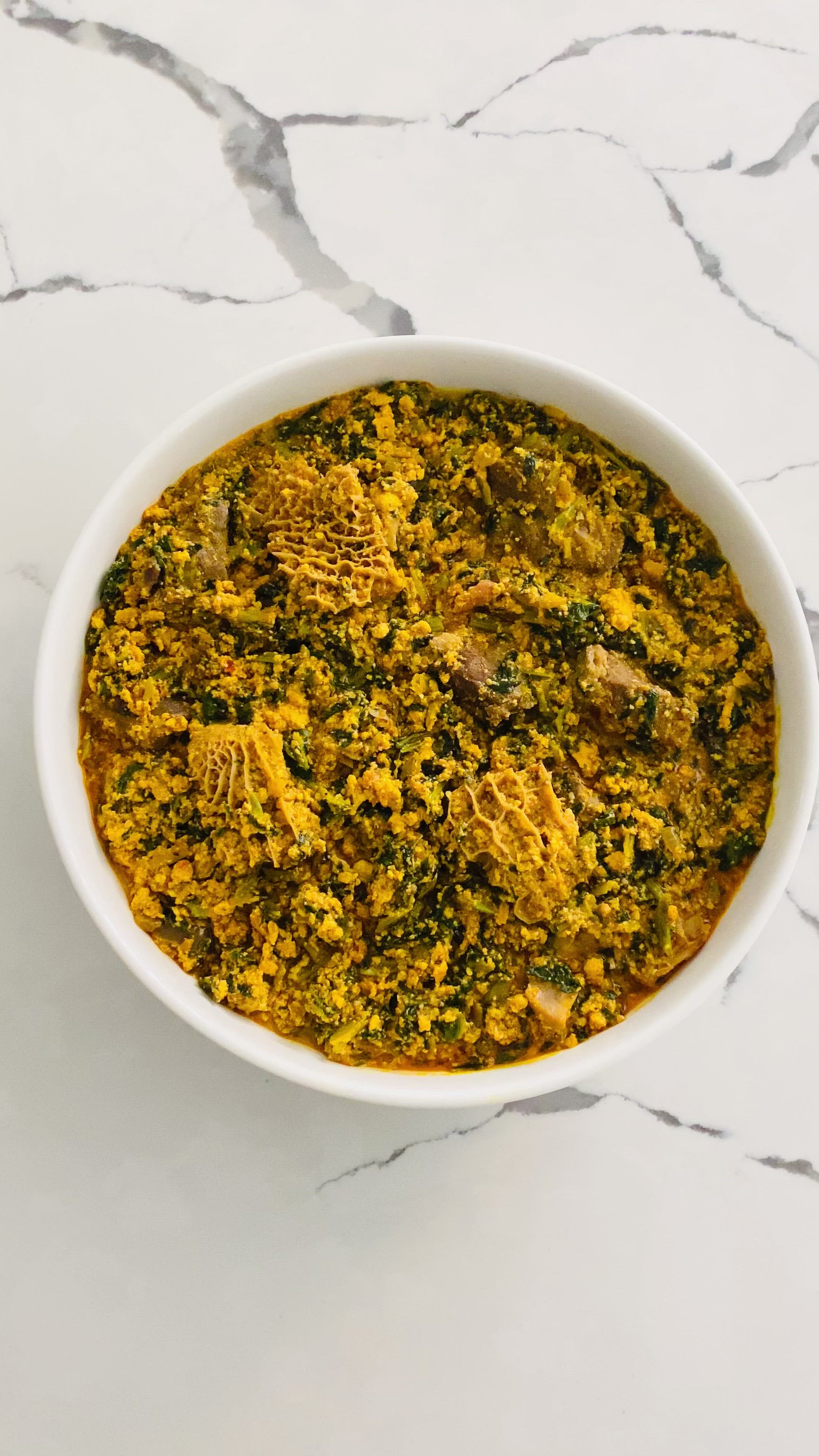 Egusi soup is a fav amongst Nigerians. It features melon seed, spinach, bitter leaf, fish, crayfish, stock fish, assorted meats including tripe, cow skin and beef parts.